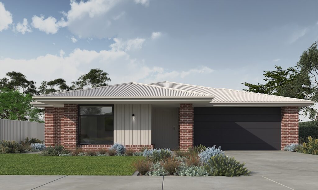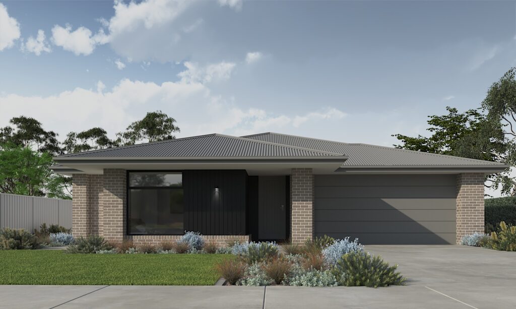 Truffle Wallaby: Roof, spouting, fascia, garage & entry doorBlack: Window frames & cladding Ash Surfmist: Roof, spouting, fascia, window frames, garage door & claddingWallaby: Entry door Haven Dune: Roof, spouting, fascia, cladding & entry doorMonument: Windows frames & garage door Praline Surfmist: Roof, spouting, fascia, window frames & renderWallaby: Garage door, entry door & cladding